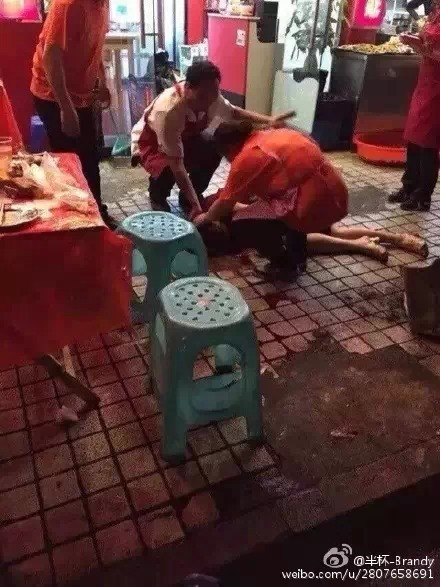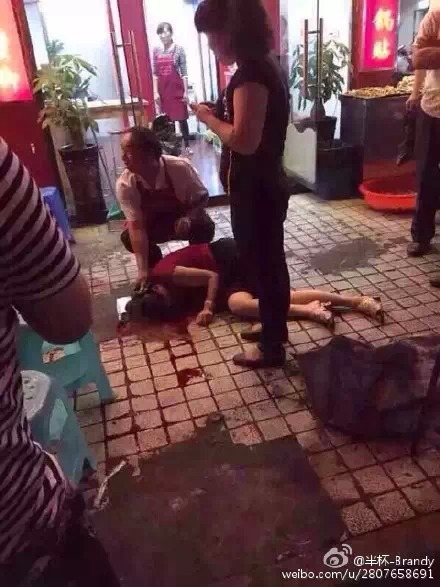 服务员阿丽正忙着上菜,突然听到一阵尖叫。就在几分钟前,收银员吴姐的前夫池某来了。他们吵了几句,池某突然冲进厨房拿了把菜刀。