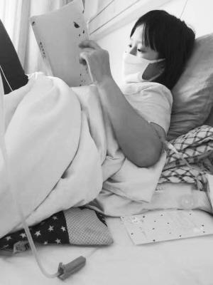 病床上的娇娇还不忘努力学习。(娇娇母亲提供)